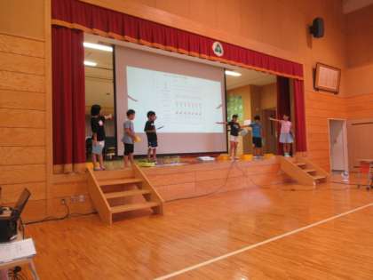 スポーツ・保健委員会の子供たちは、練習の成果を発揮して、堂々と提案しました。