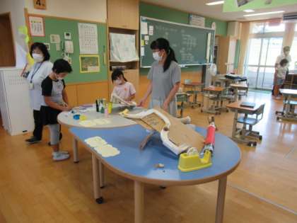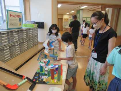 コロコロガーレで遊ぼう1 公開日 2022/07/01 更新日 2022/07/01 3年生 3・4年生が作成したコロコロガーレで遊ぼうと、招待をしてくれました。全校児童、職員が集まって、力作のコロコロガーレで遊びました。