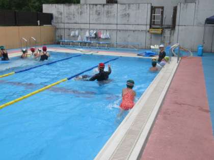 水泳教室1〜3年 2 公開日 2022/07/06 更新日 2022/07/06 学校風景 始めは水に慣れることから、そしてうきやビート板を使って泳ぎの練習に入りました。特に、呼吸のタイミングを教えていただきました。