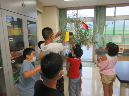 子供たちは願いごとを短冊に書き、笹の葉につるしました。子供たちの願い事はどんなものだたのでしょうか。