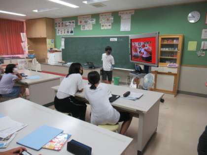 スピーチ大会 公開日 2022/07/12 更新日 2022/07/12 6年生 5・6年生は合同で外国語科の学習を行いました。1学期取り組んできたスピーチを披露し、互いに聞き合います。発表に向けて、子供たちは、練習をがんばっていました。スピーチでは堂々と発表し、拍手をもらいました。 ALTからは、いろいろなアドバイスをもらい、きっと次のスピーチに向けて生かしていくことと思います。