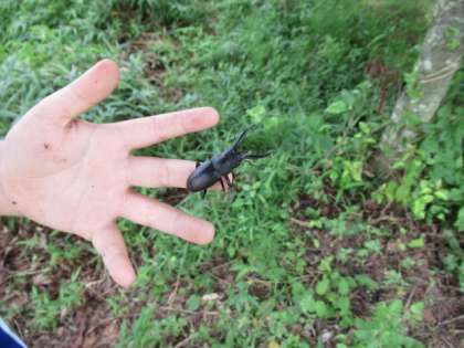学校前のクヌギの木に、クワガタムシが来ていました。最近、よく見かけます。