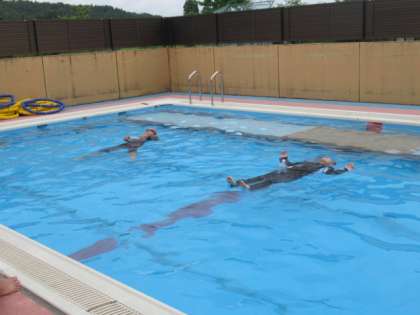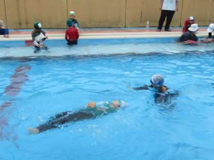 1分間、浮いていることが出来るか挑戦しました。子供たちは、指導を受けたことをしっかりと行うことができました。