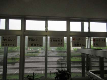 子供たちの合い言葉「アイスケーキ」は校舎の外から見えるようになっています。夏休み、ぜひ思い出してがんばって過ごしてください。
