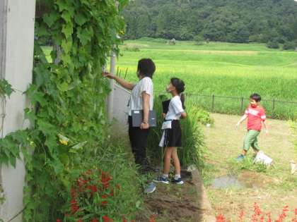 4年生理科で育てているヘチマが大きく育ちました。まだまだ花もたくさん咲いています。