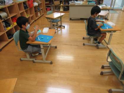夏休みの出来事を粘土で表しました。楽しい思い出が表れていました