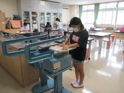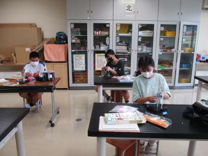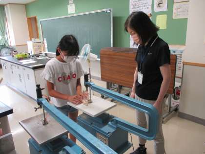 5・6年生の図画工作科の授業風景です。5年生は電動糸のこぎり、6年生は人形を使った学習をしています。どんな作品ができあがるのか、楽しみです。