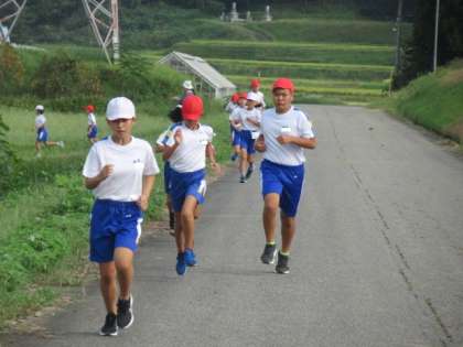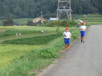 朝のトレーニングでは、各学年のミニマラソンコースを走りました。一生懸命がんばる子供たちの姿です。