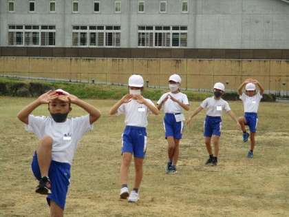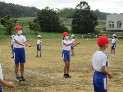大グラウンドで輪踊りを行いました。練習がんばっています。