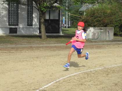 きれいになったグラウンドで、子供たちはリレーの練習に取り組みました。