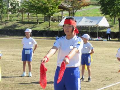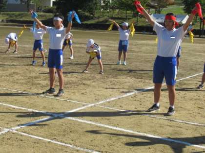 応援の練習です。あおぞらのもと、子供たちの元気な声が響きました。
