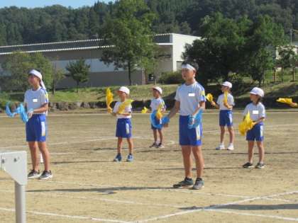運動会1 公開日 2022/10/01 更新日 2022/10/01 学校風景 秋晴れのよい天候のもと、運動会を行いました。子供たちは、今日の運動会に向けてがんばってきたことを発揮しようと、とても張り切っていました。 まず、応援でスタートしました。