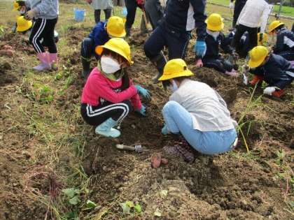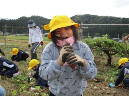 今年のイモは、べにあずまとあんのんいもです。大きなイモが表れ、子供たちはとてもうれしそうでした。