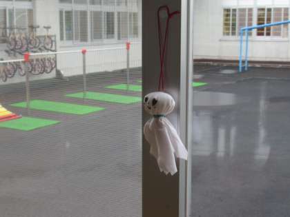 1・2年生は、校外学習の晴れを願い、てるてるぼうずをつくりました。願いがかなうといいですね。どうか、晴れますように。