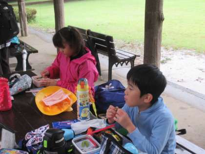 いつもより早めのランチタイムです。おいしいお弁当にとてもうれしそうでした。