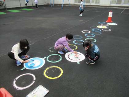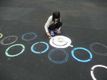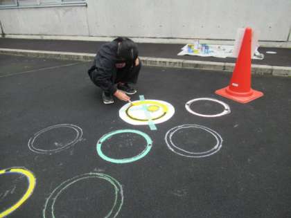 「この指止まれ方式」で、休み時間にペンキ塗りをしてみたい子供たちが集まりました。