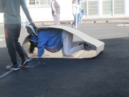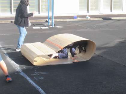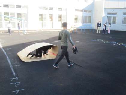 ぐんぐん広場を利用しての企画です。集めたダンボールを生かして、キャタピラを作りました。