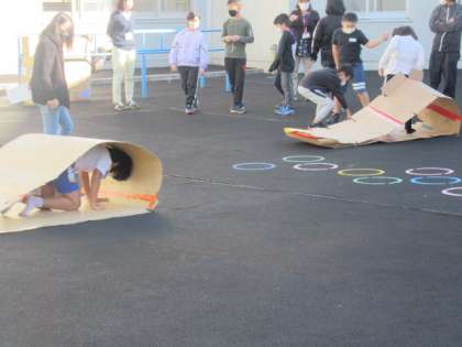 楽しい企画3 公開日 2022/10/20 更新日 2022/10/20 学校風景 委員会の子供たちは、これから冬にかけて少しでも外で遊んでほしいと願い、企画しました。本日は、気持ちのよい秋晴れでした。楽しい企画に、子供たちが学校を想い、アイデアを出してくれたのがよく伝わってきました。参加した子供たちも、とても楽しそうでした。