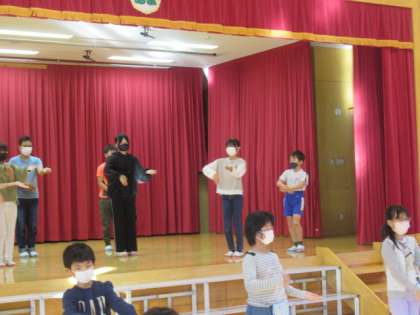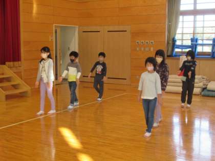学習発表会では、おわら踊りも披露します。この日は、動きを確認しました。子供たちの踊りはだんだんしなやかになってきました。