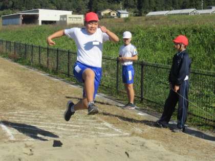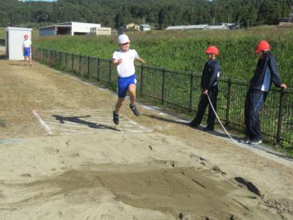 4〜6年生は、体育で走り幅跳びに挑戦していました。