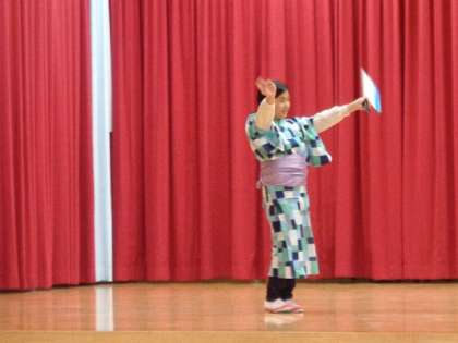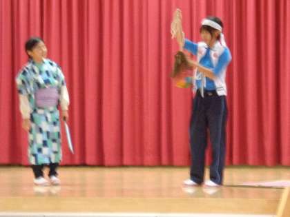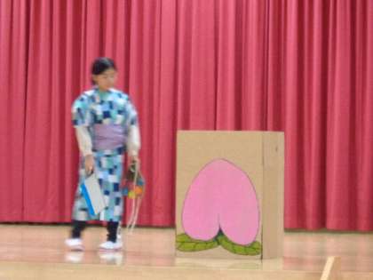 学習発表会での5・6年生の様子です。英語劇「Momotaro」を演じました。