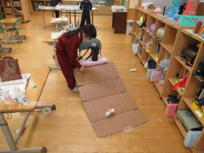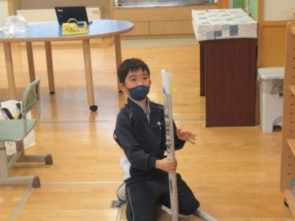 1・2年生の生活科ではおもちゃづくりに取り組んでいます。楽しいおもちゃができ、子供たちはうれしそうでした。いろいろな遊びを試していました。