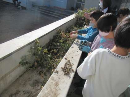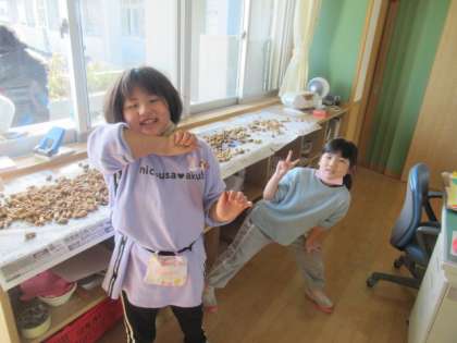 1・2年生が植えていた落花生を収穫しました。たくさんの落花生が出来ており、子供たちは大喜び。今日は乾燥させていました。食べる日が楽しみですね。