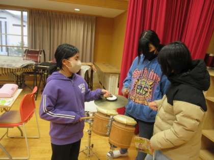 5・6年生は、音楽の時間、いろいろな打楽器を使って、リズムを取っていました。打楽器の音の違いを楽しんでいました。