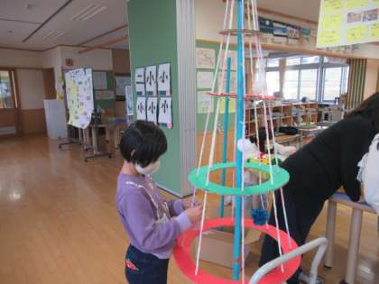 休み時間に作っているクリスマスツリーもだんだんできあがってきました。作っている子供たちも楽しそうです。