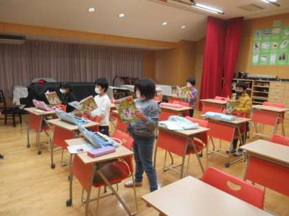 音楽の時間、階名で歌ったり、鍵盤ハーモニカをふいたりとがんばっています。だんだん上手になっています。このあともがんばってください。