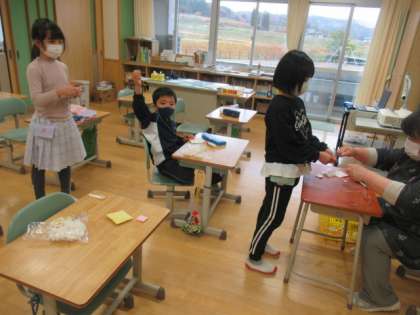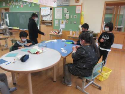 とれた綿で、ミニクッションを作っています。自分たちが育てた綿、きっと心地よいクッションができることでしょう。