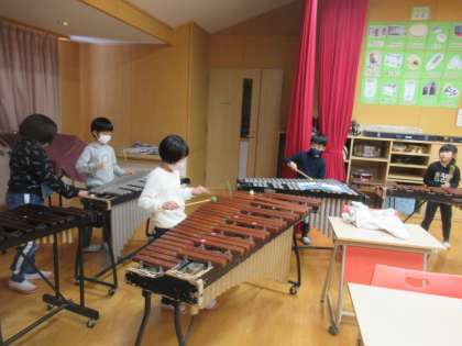低学年の音楽では、鉄琴、木琴で「きらきら星」の演奏に取り組んでいます。練習の成果が表れ、自信をもって演奏していました。