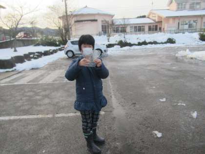学校に来るまでの歩道や道路も凍っており、たいへん危険でした。気をつけて登校してください。