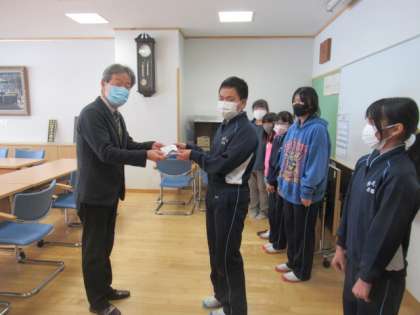 本日、八尾地域共同募金委員会の方に、子供たちの気持ちのこもった共同募金を渡しました。事務局の方は、「みなさんの思いをしっかり届けます」と言われました。子供たちの一生懸命の取り組んだこと、きっと伝わることでしょう。