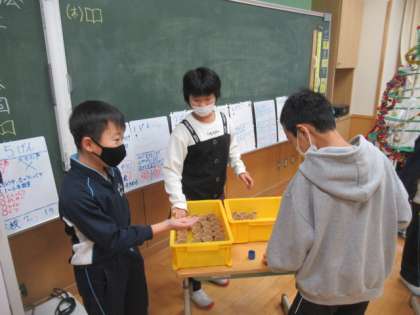 イングリッシュカードショップ開店! 1 公開日 2022/12/22 更新日 2022/12/22 3年生 3年生外国語活動の学習で、「イングリッシュカードショップ」のお店が開店しました。いろいろな形や色の用紙を選んで、自分のカードに貼っていきます。その際、英語でやりとりをしました。