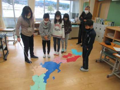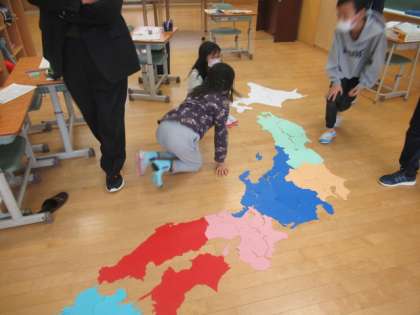 日本創生? 2 公開日 2022/12/22 更新日 2022/12/22 4年生 力を合わせて日本地図を完成させた子供たちは、満足そうでした。このあと、都道府県名について復習を行いました。活動によって位置を確認したことで、子供たちは自信をもって答えました。