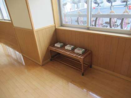 廊下にベンチと遊具を設置しました。3学期が始まったら、友達と話をしたり遊んだりしてください。待っています。