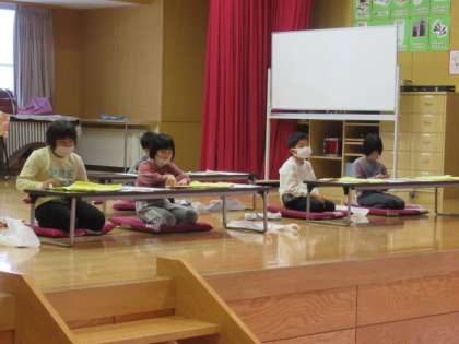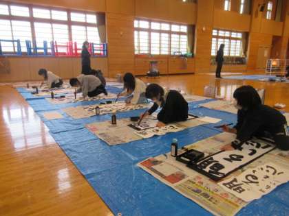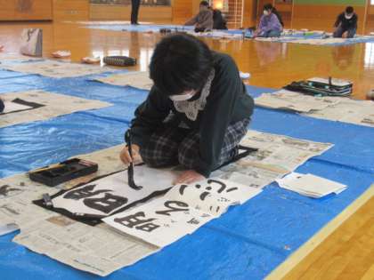 揮毫中は、筆と紙のこすれる音だけが聞こえてきます。子供たちは大変集中していました。
