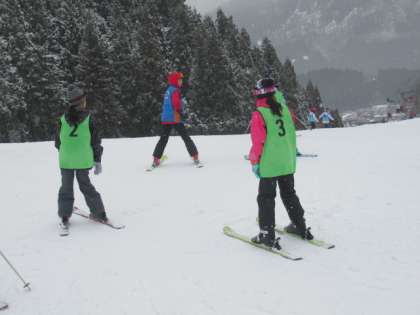 ストックなしでも、バランスよく滑っていました。インストラクターの先生のおっしゃることをよく聞いていました。