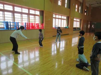かいたり、とんだり 公開日 2023/01/23 更新日 2023/01/23 1年生 1・2年生では、昔から伝わる音楽にも取り組んでいます。「さんちゃんが」では、楽しい絵描き歌に合わせて絵をかきました。また、「おおなみこなみ」は、縄跳びをしながら歌を歌いました。体を動かしながら、とても楽しそうでした。