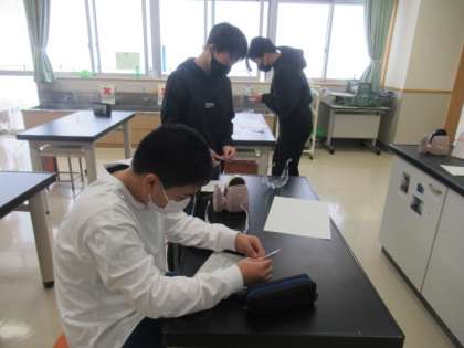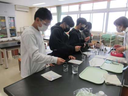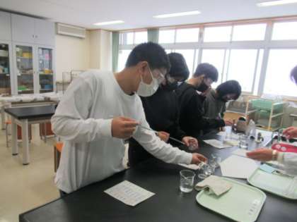 水溶液を調べよう 公開日 2023/01/25 更新日 2023/01/25 6年生 6年生は、理科の時間、水溶液の性質を調べるため、リトマス紙を使った実験に取り組んでいました。リトマス紙の色が変わると、「あっ、変わった!」とその変化に驚いていました。そして水溶液の種類を分類していました。