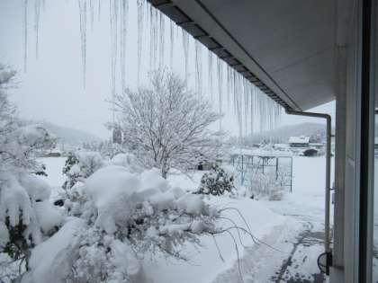 学校ののき先には、長いつららが出来ていました。子供たちはとてもびっくりしていました。昨日は、八尾地区の気温はマイナス7度、とても冷え込みました。「家の除雪をがんばった」と言っている子もおり、寒さに負けない樫尾っ子です。(つららは危険防止ため、取り除きました)