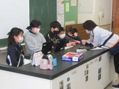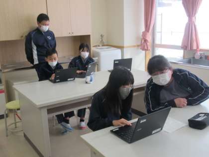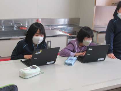 それぞれが樫尾小学校の数について調べたことを発表する準備を行っています。端末を使いながら、うまく伝わるように、協力して取り組んでいます。