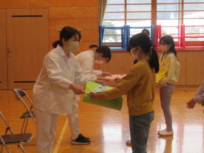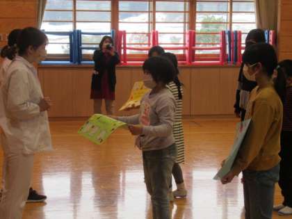 代表の子供たちが感謝の言葉を伝えました。そして、みんなで作ったメッセージカードを送りました。