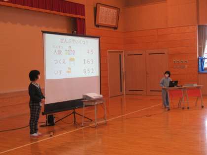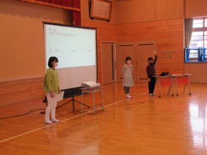 全校算数「樫尾小学校を数で紹介しよう」の発表練習を行いました。1〜6年生が、それぞれが工夫して調べ、まとめてきました。なるほどと思うような内容で、樫尾小学校のことがよく分かりました。明日の学習参観で、楽しく発表できることと思います。