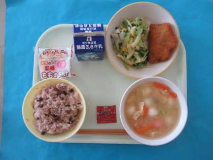 今日は、6年生の卒業をお祝いするメニューです。はなやかなメニューに子供たちも6年間を思い浮かべながらいただきました。