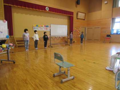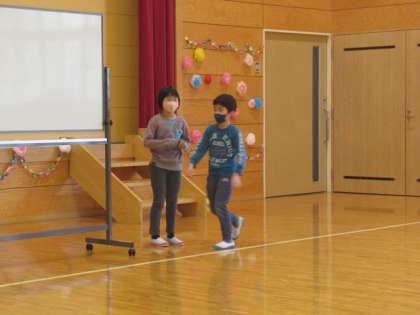 卒業を祝う会3 公開日 2023/03/03 更新日 2023/03/03 学校風景 1・2年生の出し物です。 名前の文字を入れ替えて、言葉を作りました。だれの名前かをあてるゲームです。6年生の子供たちは、とても楽しそうでした。