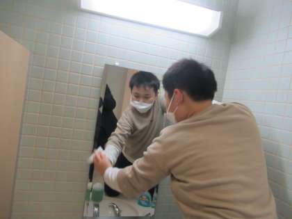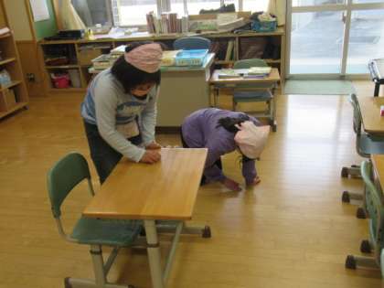 清掃時間、子供たちは1年間のよごれを落とそうと、重点的に清掃しました。どの子供たちも一生懸命行っていました。