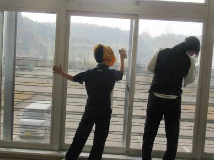 ふだんは気づかないような汚れを見つけ、一生懸命とっています。