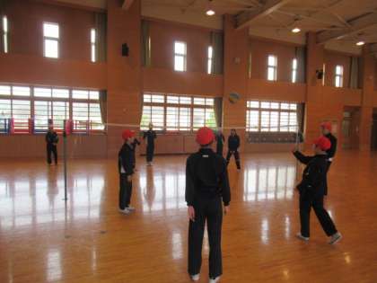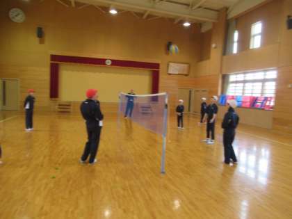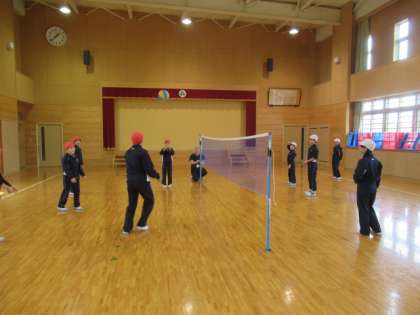 体育では、キャッチバレーボールに取り組んでいました。「がんばれ」と励まし合いながら取り組んでいました。